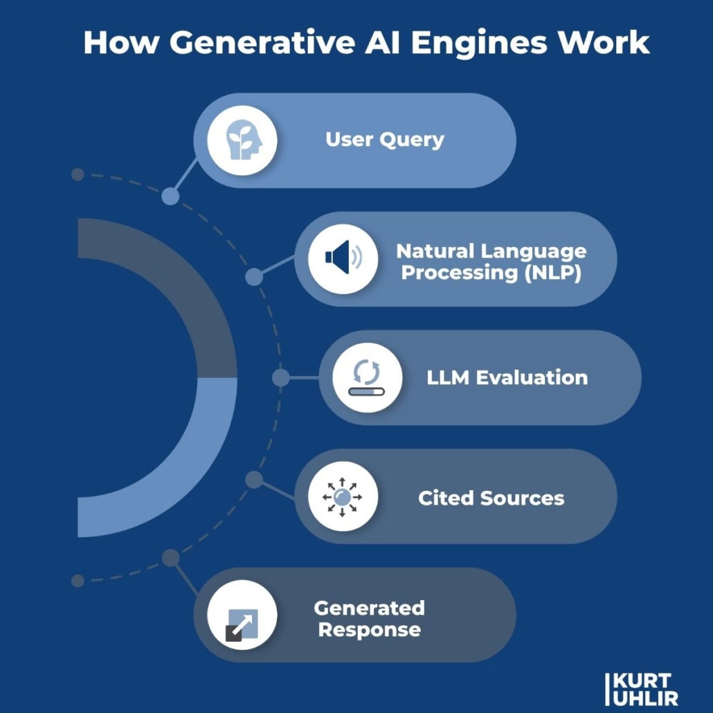 Generative AI engines use large language models (LLMs) trained on vast datasets to generate human-like responses and compile comprehensive answers. These systems employ natural language processing to interpret user queries while maintaining conversational flow, considering factors like user location and behavior to enhance response relevance.